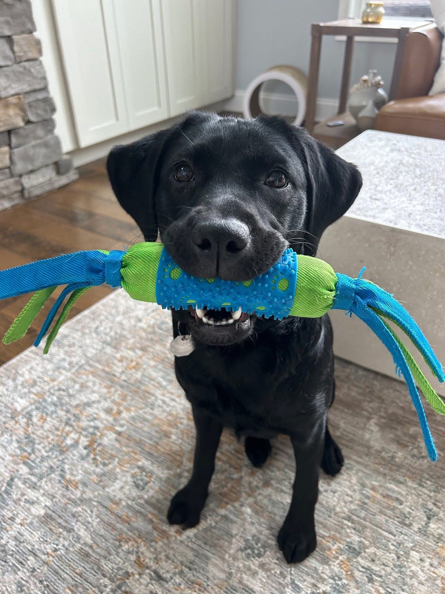 Fun Fact: “Flint likes to carry his toys when we go for walks!”